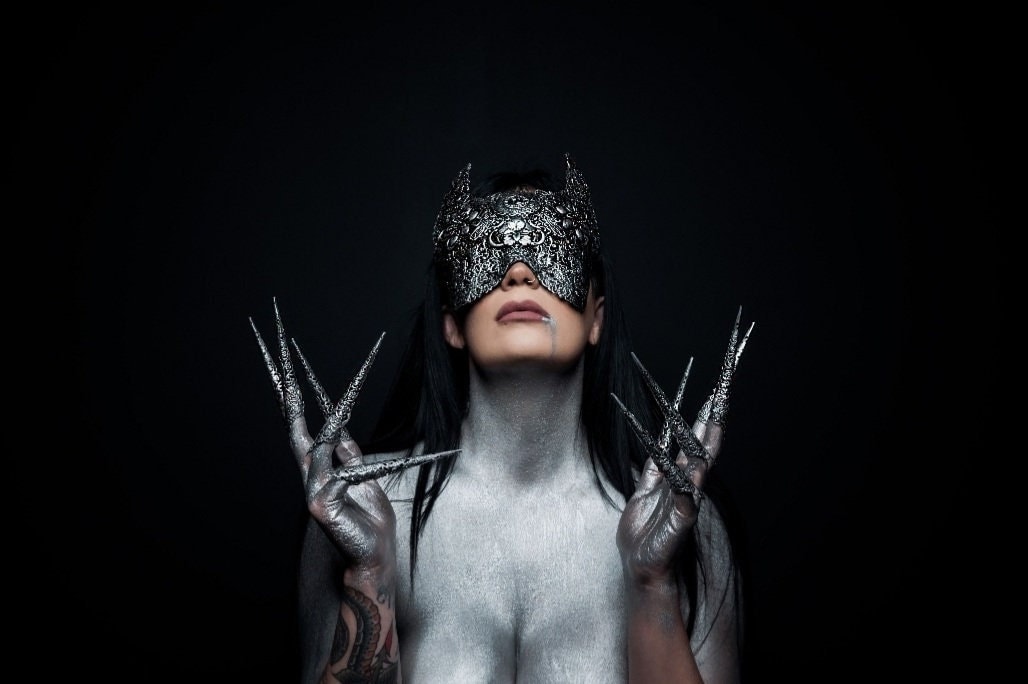 This beautiful mask is made using metalwork and finished with a beautiful gilt varnish in either gold or silver, we can also finish this mask with silver / gold leaf. Mask pictured is black.