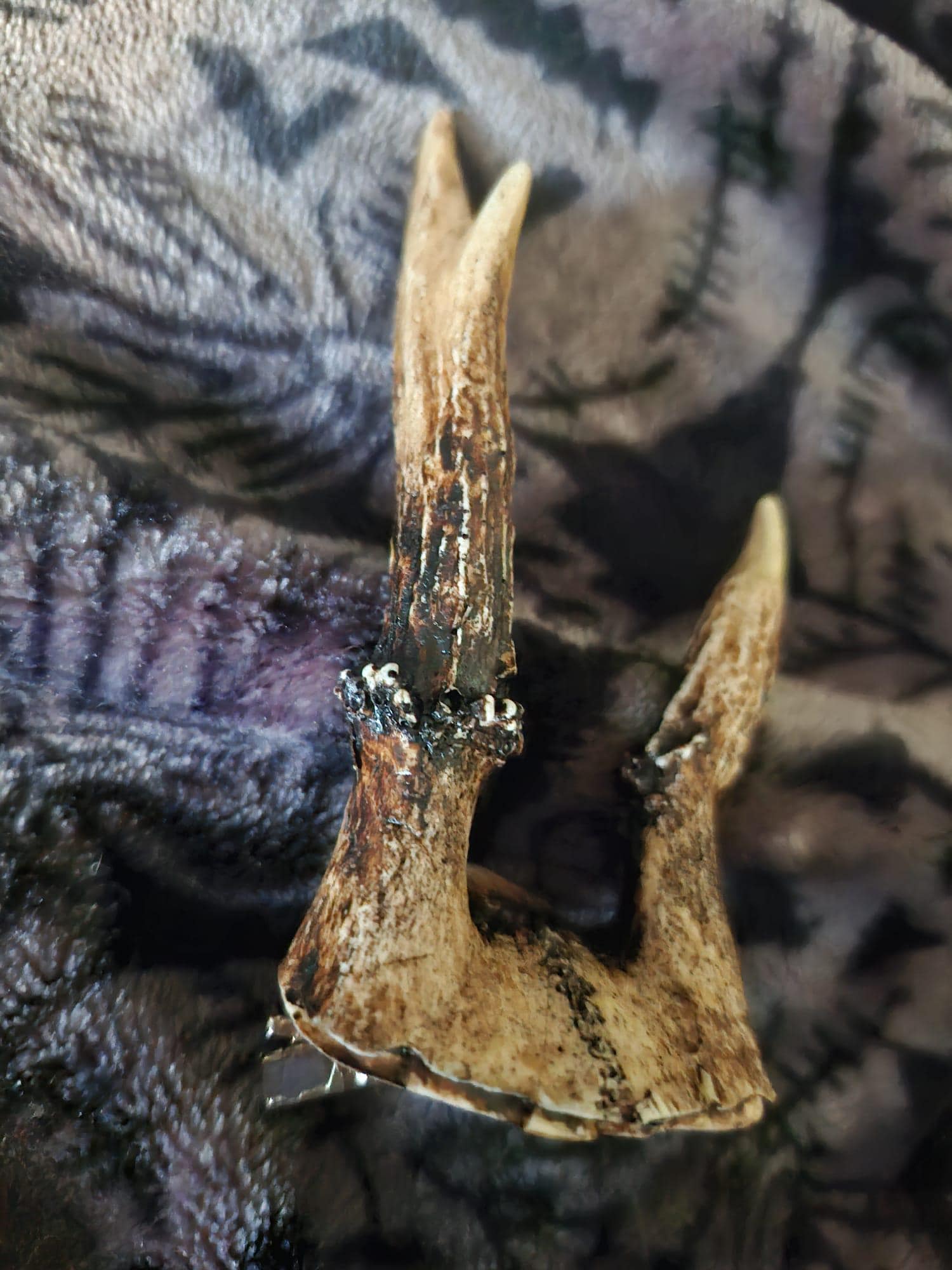 These gorgeous antlers are cast in light weight resin at the Hysteria Machine laboratory. . Attached to a discrete hair clip beneath the design.
