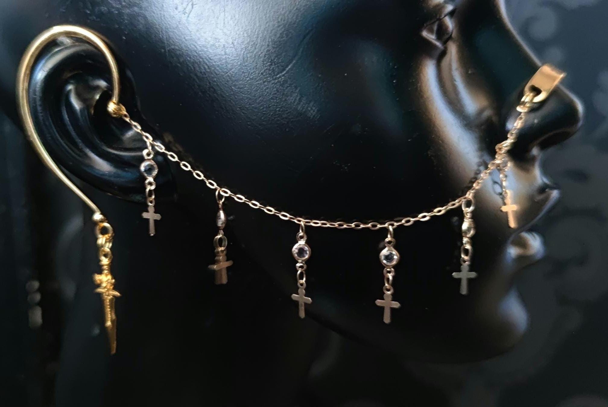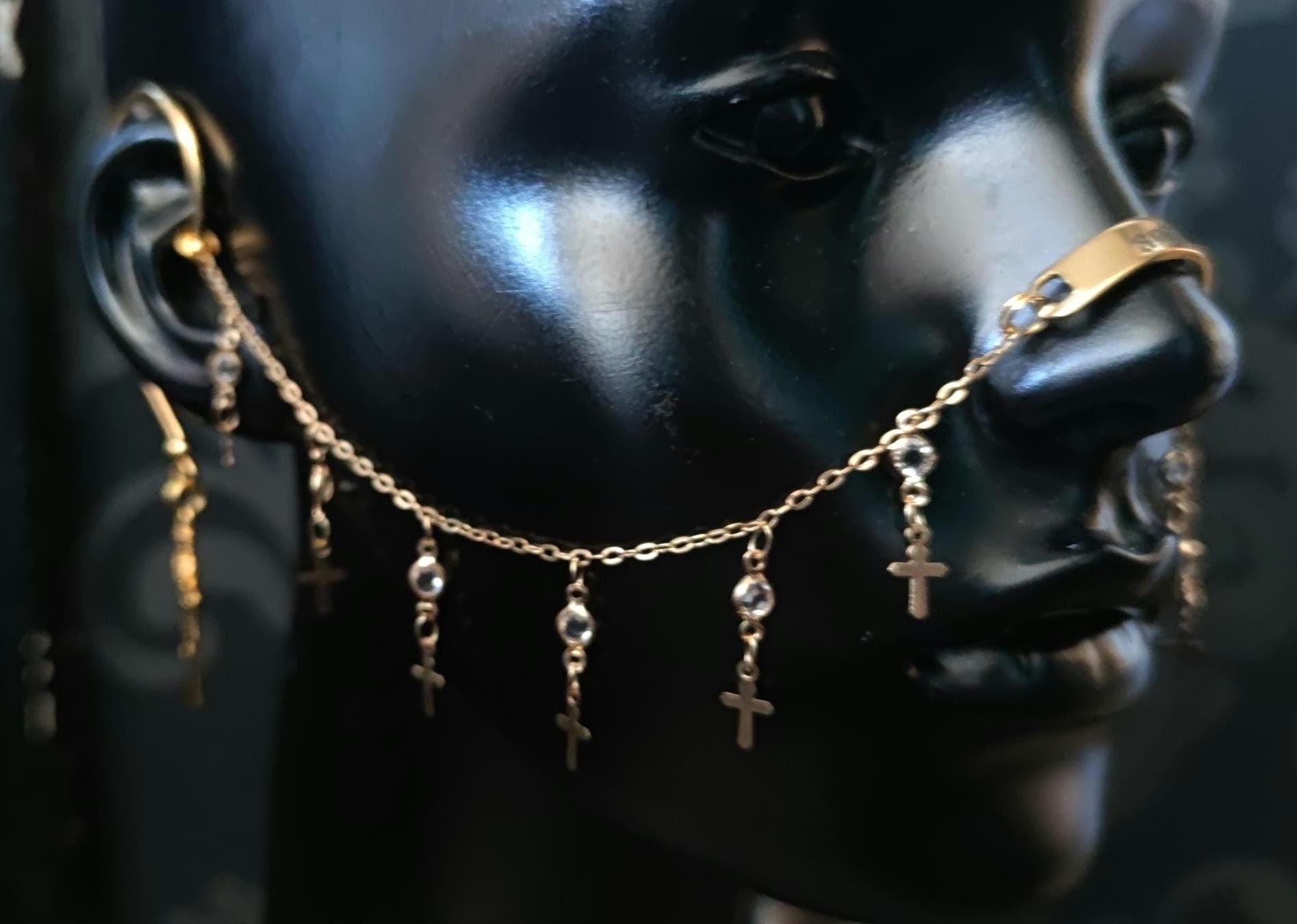 Engraved Gold Saint Cross Chain Nose Armour