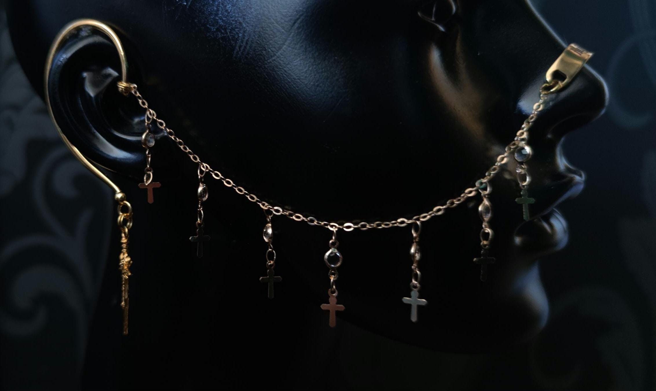 Engraved Gold Hysteria Cross Chain Nose Armour