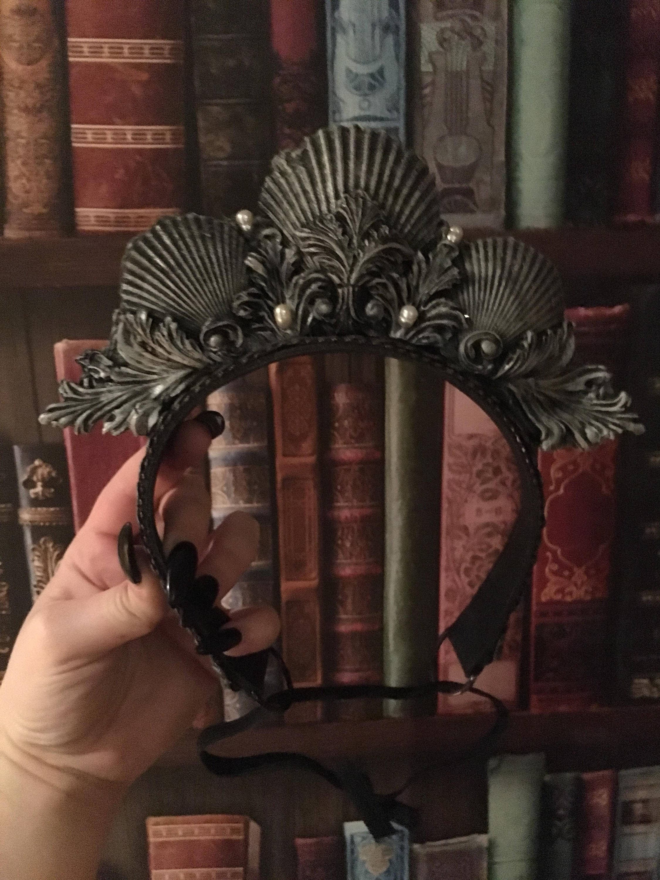 Hand sculpted and then cast in high quality resin, this durable and beautiful design features shells, flowing leaf designs that add a touch of victoriana seaweed and freshwater pearls.