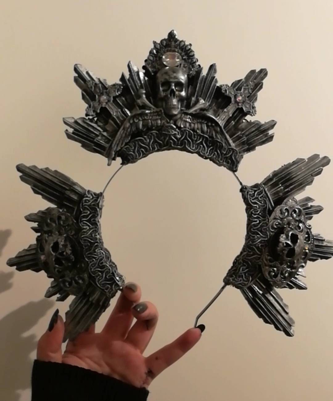 This gorgeous halo features 3 skull pieces to form one showstopping design.